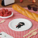 Shy Blushing Ninja Holding Origami Paper Heart Plates