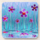 A digital drawing of cute stylized purple flowers with shining red centers. They're peering quizzically at you from the tall grass beside a pool of clear rippling water.