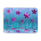 A digital drawing of cute stylized purple flowers with shining red centers. They're peering quizzically at you from the tall grass beside a pool of clear rippling water.