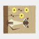 Stylized geometric art of a Siamese cat sitting with flowers on a beige and brown background. Colors can be customized, Contact designer for help editing design color