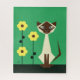Stylized semi abstract Siamese cat with yellow flowers on a green background. Colors can be customized for help customizing contact designer