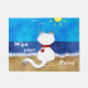 A fun cat lovers door mat featuring a cute Siamese cat sitting on a sandy beach and ocean waves enjoying the sunshine with the words "Wipe your Paws!" Customize this fun Siamese cat doormat for your favorite cat lover!
