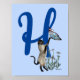 Siamese Cat Butterfly Daisies Monogram Initial H Poster