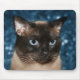 Beautiful blue eyed seal point siamese cat face on a blue background photo mouse pad
