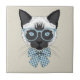 This design features a Siamese cat dressed in a blue pair of glasses and checkered bow tie.