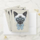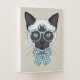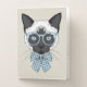 This design features a Siamese cat dressed in a blue pair of glasses and checkered bow tie.