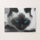 Black and white photograph of a beautiful Siamese cat with icy blue eyes. Great gift for yourself or the cat lover in your life.