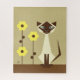 Stylized semi geometric abstract Siamese cat with flowers on a beige background. Colors can be customized for help customizing contact designer
