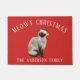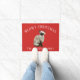 Adorable Christmas doormat featuring a Siamese cat wearing a santa hat on a festive red background.