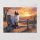 Cat lovers!! Rural Siamese cat sits on a fence at sunrise
