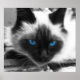 Black and white photograph of a beautiful Siamese cat with icy blue eyes. Great gift for yourself or the cat lover in your life.