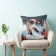 Siamese Cat Running in Snow with Christmas Hat Throw Pillow