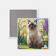 A cheerful Cat sits peacefully on lush green grass, surrounded by colorful spring blooms under a soft blue sky. This digital oil painting captures a serene moment with expressive brushstrokes, warm colors, and a sense of gentle joy.