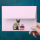 Siamese Cat with a Birthday Cake and Confetti Pink Envelope