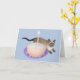 This kitten sits by a cake with a single candle. A perfect First Birthday card.