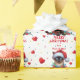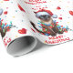 The cute pattern on this Christmas wrapping paper is of an adorable Siamese cat wearing a Santa hat and wrapped in Christmas string lights. Between the cat images is your custom text in red. Everything is placed on a multi color round ball confetti background that is sprinkled with red hearts. This is a perfect paper for grandparents, parents, aunts and uncles to wrap family gifts in. Be sure to see the gift tags and other matching products in our store.