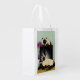 The shopping bags were excellent quality. The design was printed on both sides. They fold into a small rectangle that snaps close for easy storage. I bought some to give out and they were well received by everyone. I highly recommend them.