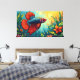 Very impressive product! The canvas is sturdily made. It features a saw tooth hanger on the back, making it easy to "try out" the canvas in several rooms until I found the best location. It attracts good comments from my friends. I love it! The printing is wonderful! Colors are as bright and crisp as they appeared on the website.