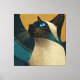 Piercing turquoise eyes and sleek dark points define this elegant Siamese cat as it gazes upward toward a radiant golden mosaic sun against deep teal geometric patterns. Intricate pointillist textures bring rich contrast between the creamy fur and bold black accents, creating a sophisticated blend of modern graphic art and timeless feline grace. Ideal for cat lovers and art collectors, this striking digital illustration adds instant elegance to canvas prints, posters, throw pillows, phone cases, mugs, tapestries, and stylish home décor.