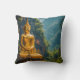 This stunning artwork captures a colossal Golden Buddha statue seated in deep meditation, set against a dramatic backdrop of lush Thai jungle cliffs. The vibrant gold of the statue radiates warmth, contrasting beautifully with the deep emerald greens and misty blues of the towering limestone karsts and dense foliage. The gentle light illuminating the scene creates an atmosphere of profound tranquillity and spiritual power.