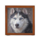 This digital painting depicts a Siberian Husky standing on snow, its fur glistening with frosty highlights as the winter landscape stretches endlessly behind it. The dog’s expressive eyes catch the viewer’s attention.
