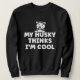 Siberian Husky Dog Saying My Dog Thinks I m Cool Sweatshirt