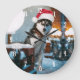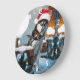 Siberian Husky dog wearing santa hat Large Clock