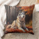 Siberian Husky in Autumn Leaves Fall Inspire Throw Pillow