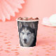 This digital painting depicts a Siberian Husky standing on snow, its fur glistening with frosty highlights as the winter landscape stretches endlessly behind it. The dog’s expressive eyes catch the viewer’s attention.