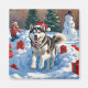 Siberian Husky Running in Snow with Christmas Hat Magnet