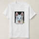White Siberian Husky with staring blue eyes will stop people in their tracks. This shirt will bring comments.