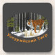 A Siberian Tiger emerges from a snow-laden forest in the Russian Far East. The Siberian Tiger is also known as the Amur Tiger and the Ussuri Tiger. Russian (Cyrillic) text beneath the image reads "Ussuriiskii Tigr" (Ussuri Tiger). Add your own additional text on the reverse side. Largest of the tiger sub-species, the Amur, or Siberian, Tiger is highly endangered. They are found in the Amur River area on the border of China and Russia. A few may still survive in North Korea.