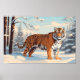 Majestic Siberian Tiger in Snow Covered Woods, vector artwork - Ai Poster