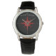 Sic Parvis Magna Men's Classic Watch with black leather strap.