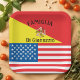 the American flag. The word "Famiglia" is arced over the personalized last name in a black serif font. This is a great accent at your next Sicilian party or 4th of July party!
