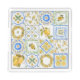 Watercolor ornament square pattern, lemons Sicily, yellow and blue print. Summer pattern