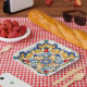 Mediterranean tiles, popularized by Dolce & Gabbana's recent fashion collections, are the epitome of Sicilian luxury. Red blooms and bright sunny flourishes add special whimsy to this design.