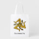I own a lot of reusable grocery bags, but this one holds its box shape and simply stands up on its own even if there is nothing in it. Its stiffer than your regular reusable bag too, and the material is water resistant. I poured water on the exterior and it didn't penetrate inside to the other side. I'm buying a couple more. Wish I knew how durable these bags were or I would have purchased a few more with my initial order. I also like how it folds and buttons up when not in use, making it easy to put into a handbag or luggage. I haven't used this bag yet, as I purchased it for travel use, like when you're at the airport and need to small sturdy bag to place any airport purchases in, like food, souvenirs etc. I can tell you when you first see this bag, it looks very cheap, but after closer inspection of the material and the seams its a very sturdy reusable bag. I tested it out by putting some really heavy objects inside and I could not observe any stress to the bag at all. Another thing I like about it, is the fact the medium size that this is makes it easy to just carry it in your hand without the bottom of the bag scraping the ground, like most other bags do when you're short. That alone, deserves 5 stars. I just wish there were more colors to choose from! The PDX Airport Carpet printing looks just like the photo, and using this bag during travel might be a conversation piece when/if a native from Oregon happens to see it.