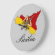 Great price for a very nice product. Arrived a day early - unheard of these days. The outside gold area has a little more orange tone to it than shown in the picture. Great packing so product can't get damaged. I used the same packing to forward the clock to my brother and sister-on-law for the 50th wedding anniversary. Printing was just as expected - lovely!