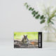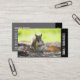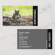 A horizontal business card template with a black side banded layout. Attractive image on the front. Company name in rotated text on the front and back with all other contact details on the back. The photo or image on the front can also be changed. The design also allows scope for additional customization.