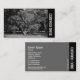 A horizontal business card template with a black side banded layout. Attractive image on the front. Company name in rotated text on the front and back with all other contact details on the back. The photo or image on the front can also be changed. The design also allows scope for additional customization.