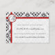 Black Damask On White Red Trim Save The Date shown on Linen Stationery - Black Damask On White with Red Trim Wedding Invitation -you choose paper style and color - as well as - font style and color. If you would like a glossy finish (glossy on front side only) order the basic, linen or metallic papers - for a matte finish order recycled, felt or speckled.
