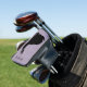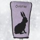 This custom golf club cover for your putters is a pretty light patterned purple with a side profile of a sitting rabbit in black silhouette. Customize your name with the template.