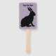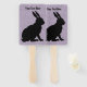 This program hand fan is light purple with the side profile of a sitting bunny rabbit done in black silhouette. Customize your text on the front and back with the templates.