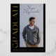 Celebrate the milestone of graduation with our sophisticated and elegant Graduation Announcement Card. This striking card features a timeless black background that perfectly complements a single, portrait-oriented photo of the graduate. Alongside the photo, the word "GRADUATE" is emblazoned in luxurious real gold foil, presented in a bold, modern font that adds a touch of contemporary class.