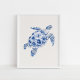 With its elegant lines and refined detail, this side-view turtle design offers a touch of sophistication to coastal décor. The soft beige background enhances the rich blue-and-white tones, creating a timeless nautical statement. Whether hung in a living room, bathroom, or hallway, this print brings ocean charm and tranquil vibes to your home.
