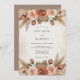 This design features a rich tapestry of earth-toned blooms and dried botanicals. Delicate roses and textured accents in warm sienna and burnt orange hues create a bohemian, romantic feel.