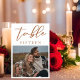 This simple sienna brown script wedding table number features elegant light brown typography above your couple photo for a trendy, minimalist event in the fall. Each table can have a different engagement photograph.