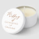 These sienna brown wedding mini candles are a warm regal color font for a bride or groom looking for a blend between soft and masculine. The lovely tan minimalist script features simple cursive typography on a chic mini candle.