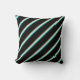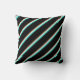 This throw pillow design features stripes colored sienna, mint cream, turquoise, and black.